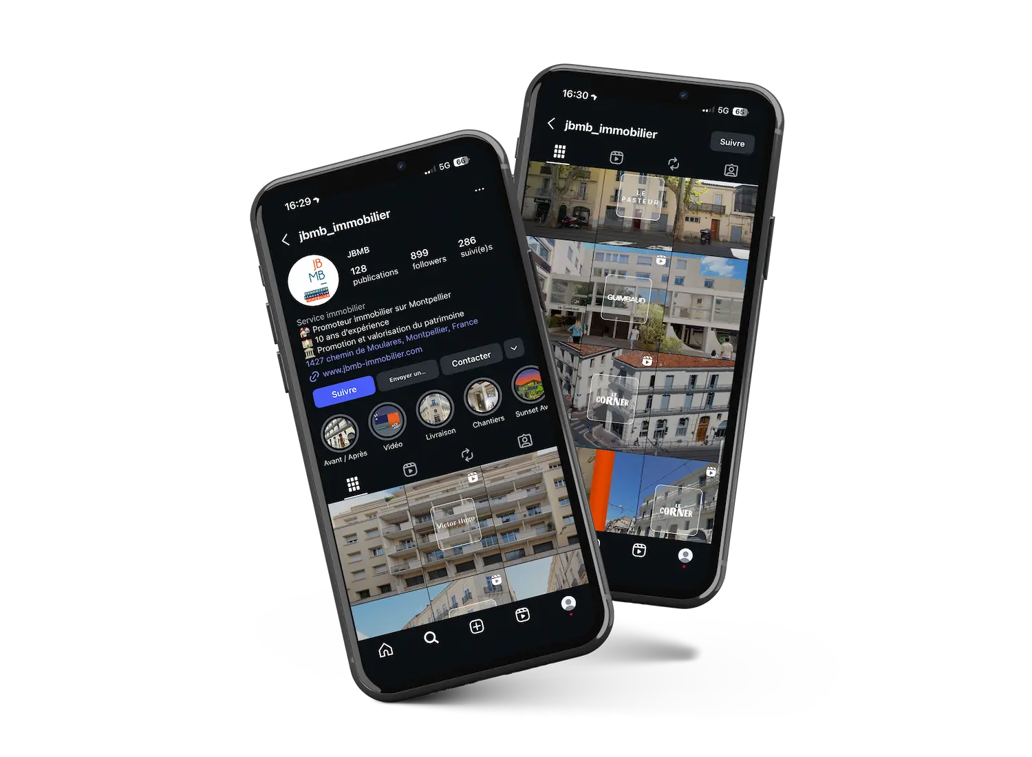 L’objectif n’était pas uniquement esthétique, mais aussi d’augmenter la crédibilité de la marque, la mise en valeur des projets immobiliers et l’engagement des visiteurs dès l’arrivée sur le profil.